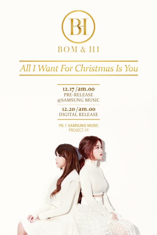 16일 YG엔터테인먼트는 "박봄과 이하이는 '봄&하이'라는 타이틀의 유닛을 결성하고 대표적인 크리스마스 시즌송인 머라이어 캐리의 'ALL I WANT FOR CHRISTMAS IS YOU'를 재해석, 감미로운 하모니를 선보인다"고 밝혔다.