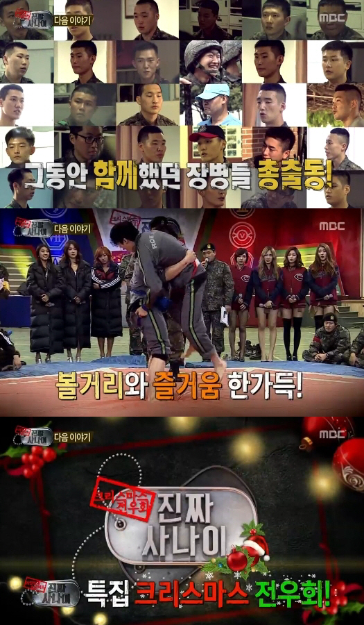 '진짜 사나이' 크리스마스 전우회 특집은 그동안 출연자들이 방문했던 부대의 일반 병사들과 육군 6개 부대 소속 장병 200여 명이 녹화를 진행했고, 게스트로는 미쓰에이와 씨스타가 출연해 더욱 기대감을 높였다.