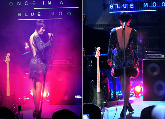 이휘향은 최근 한 라이브 카페에서 진행된 '빛나는 로맨스' 촬영 현장에서 스판넥스 소재의 블랙 원피스를 입고 무대에 올라 노래를 하는 장면을 선보여 시선을 모았다.