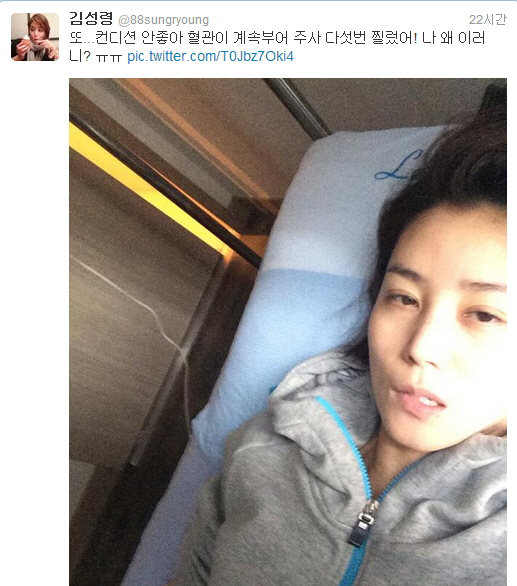 배우 김성령이 병실에서 촬영한 셀카사진이 논란이 되고 있다.