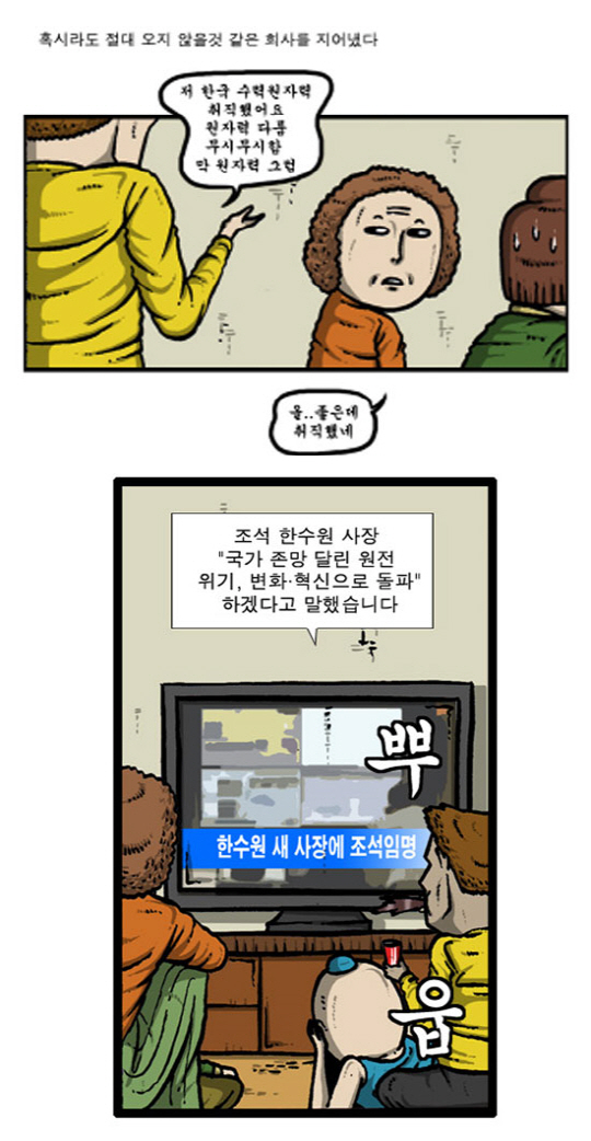 한편 조석의 만화 후 한수원 사장의 실명을 확인하기 위해 인터넷 포털 사이트와 한수원 홈페이지로 네티즌들이 모여들어 실시간 검색어 1위를 차지하는 등 재미있는 해프닝이 벌어지기도 했다. <스포츠조서닷컴>