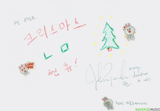 포털 사이트 네이버의 '네이버 뮤직'은 지난 5일 가수 아이유, 엑소, 이적, 윤종신, 박지윤, 김예림, 존박 등 스타들이 직접 보내온 크리스마스 소원 그림엽서를 공개했다.