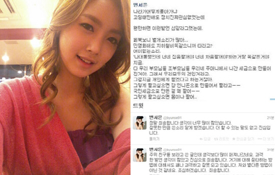 이후 네티즌들의 질타에 변서은은 페이스북 계정을 닫은 뒤 자신의 트위터에 "과격한 발언 생각이 짧았고 진심으로 죄송합니다"라고 사과 했지만, 여전히 싸늘한 반응이 쏟아지는 등 많은 이들의 관심이 변서은에 쏠렸다.