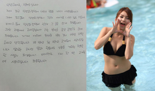 박근혜 대통령을 겨냥한 막말로 논란을 빚은 방송인 변서은이 자필 사과문을 남겼다.