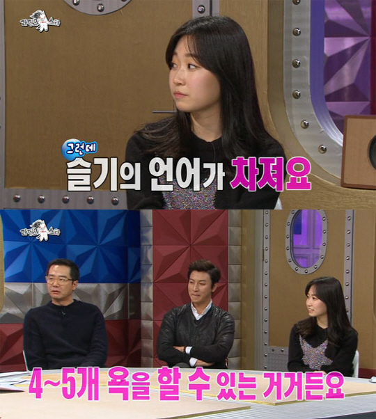 이날 김슬기는 "욕 연기에 집착해서 밥 먹을 때도 욕을 한다던데?"라는 MC 김구라의 질문에 "요즘은 집착 안 한다. 좀 질렸다"라고 답했다.