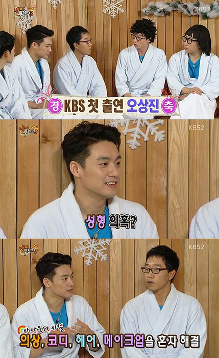 이어 MC 박미선이 오상진에게 "프리로 바뀐 후 얼굴이 연예인처럼 바뀌었다. 시술을 받았느냐"고 묻자 오상진은 "운동하고 살이 좀 빠졌다"며 "아나운서 할 때는 혼자 다 모든 것을 했는데, 프리 선언 후 매니저와 회사 스태프들이 모여 헤어부터 스타일링까지 어떻게 할지 회의를 하는데 정말 신기했다"고 설명했다.