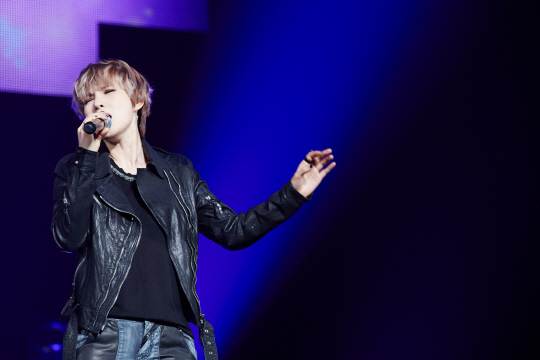 가수 거미가 여자 솔로가수 부재 상황에서 상대-장르-장소 등 3대 불문 인기 행진으로 주목을 받고 있다. 지난 17일과 18일에 열린 김재중의 오사카 콘서트에서 열창 중인 거미. 사진제공=씨제스 엔터테인먼트