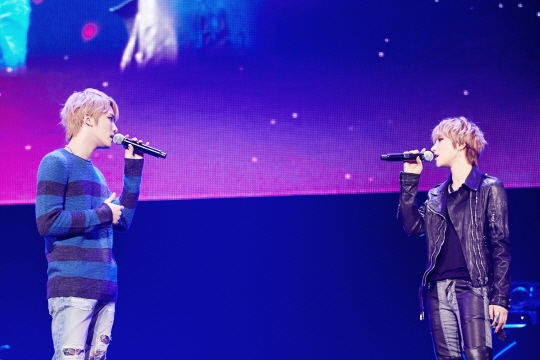 거미는 최근 남자 가수들과 환상적인 케미를 자랑하고 있다. 사진은 김재중과 열창 중인 거미. 사진제공=씨제스엔터테인먼트