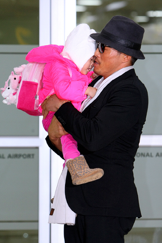 추사랑 입국, 플래시 세례에 수줍어 '아빠 품에 쏙~'