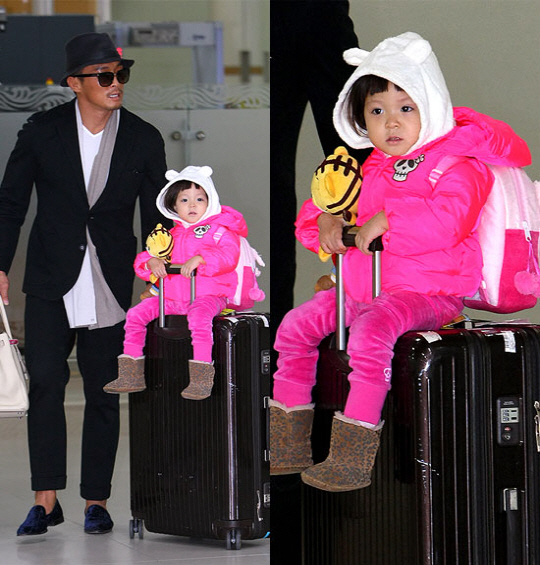 '2013 KBS 연예대상' 참석을 위해 입국한 추성훈, 추사랑 부녀의 남다른 공항패션이 화제다.