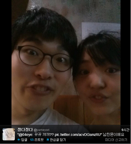 이어 정다정이 해당 글을 리트윗하며 "남친몬이에요"라는 글을 남기며 열애 중임을 암시했다.