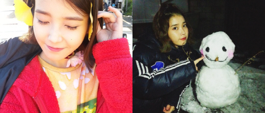 또한, 아이유는 공식 팬카페인 만큼 공식적인 자리에 맞는 점잖고 잘 나온 사진들이라며 4장의 사진을 공개, 근황을 알렸다. 공개된 사진 속의 아이유는 노란 단풍잎을 머리에 꽂고 눈을 감은 채 귀여운 표정을 지어 보이는가 하면 야외에서 두꺼운 점퍼를 입고 눈사람과 함께 찍은 사진을 공개했다.