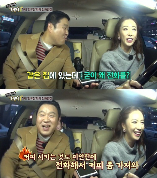 이날 방송에서 윤태영의 아내 임유진과의 깜짝 전화통화 연결한 MC 김구라는 "윤태영 씨가 참 표현을 못하는데 불만은 없냐"고 물었다.