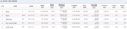 개봉 5일 만에 200만 관객을 돌파한 영화 '변호인'이 24일 크리스마스 이브에 44만 6754명(이하 영진위 영화관 입장권 통합전산망)의 관객을 동원, 누적 관객수 247만4211명을 돌파했다.