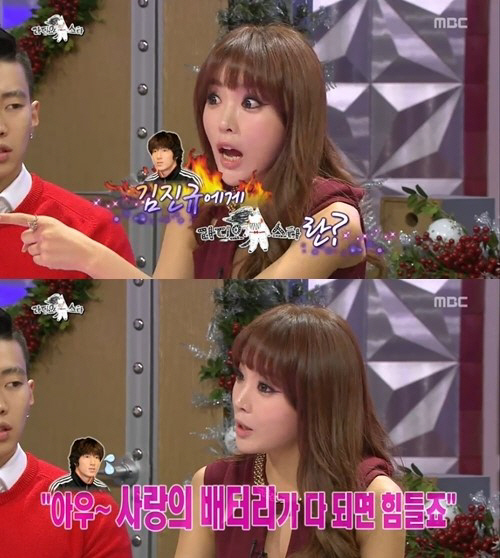 홍진영은 "일부러 얘기를 꺼낸 게 아니라 말을 하다 나온 거다"라며 언급할 의도가 없었음을 밝혔다. 이어 "김진규가 한 인터뷰를 봤다. '김진규에게 라디오스타란?'이라는 질문을 받았더라. 사랑의 배터리가 다 되면 힘들다고 했더라"면서 "방송 후 측근 분에게 연락도 왔다. 지금 그에게 여자 친구가 있으니까 언급을 자제해달라고 하더라. 지금 얘기한 것도 미안하다"고 후담을 전했다.