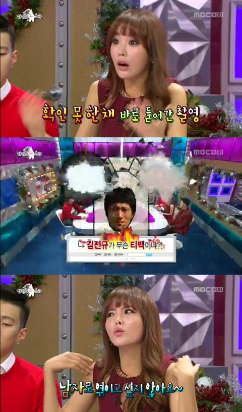 홍진영은 25일 방송된 MBC '황금어장-라디오스타'(이하 '라스')에 출연해 전 남자친구였던 김진규를 언급한 것과 관련해 해명했다.