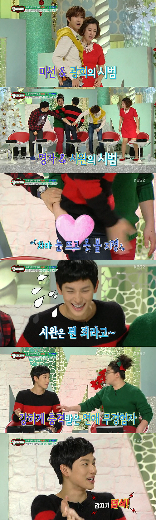 이어 이영자는 연애 경험이 없는 임시완에게 "시완씨는 좀 배워야 돼요. 이런 거 처음이죠"라고 말했고, 임시완은 "갑자기 덥석 하시니까..."라며 말을 잇지 못해 폭소케 했다.