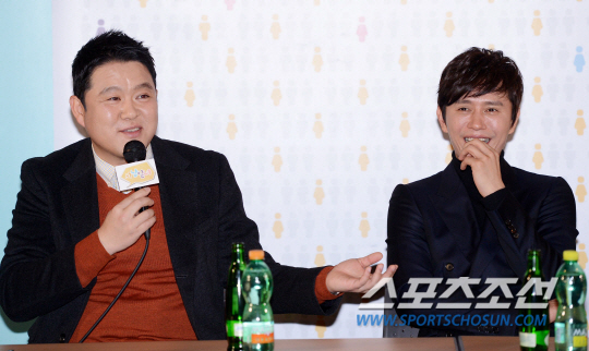MBC 예능 프로그램 '사남일녀' 제작발표회가 26일 서울 여의도 CGV에서 열렸다. 출연자 김구라가 김민종을 가리키며 김민종 실제성격을 언급하고 있다. 정재근기자 cjg@sportschosun.com/2013.12.26/