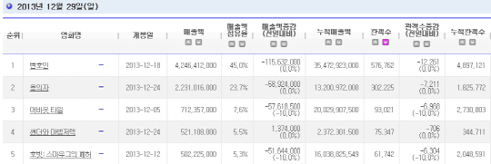 또한 2주 연속 박스오피스 1위를 차지, 489만 관객을 돌파하며 500만 관객 돌파를 목전에 둔 영화 '변호인'은 약 67%에 육박하는 좌석 점유율을 기록한 것은 물론 개봉 후 포털 사이트 네이버에서 평점 수직 상승을 보여주며 8.76점을 기록했다. 일반적으로 개봉 후 평점에 참여하는 관객이 많아질수록 평점이 하락하는 것에 반해 '변호인'은 이례적으로 시간이 흐를수록 평점 상승을 기록하고 있는 것.
