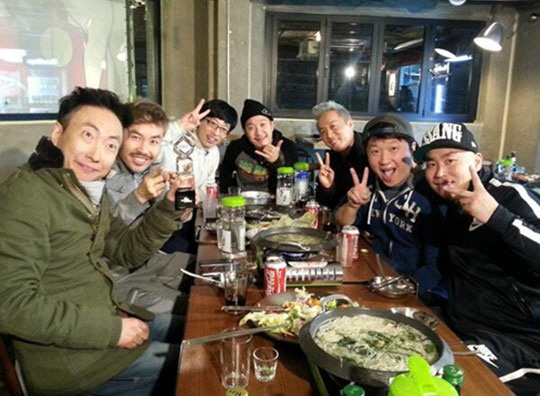 공개된 사진에는 2013 MBC 방송연예대상 직후 '무한도전' 멤버들의 회식자리가 담겨 있으며, 시청자가 뽑은 최고의 프로그램상 트로피를 들고 환하게 웃고 있어 눈길을 끌었다.