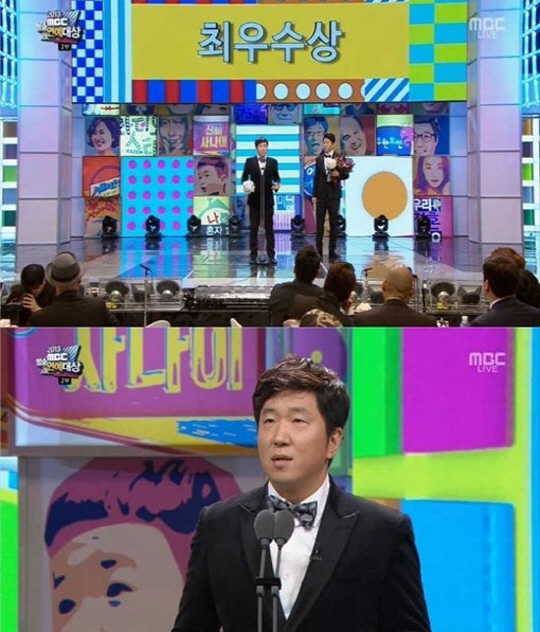 정형돈은 29일 서울 영등포구 여의도 MBC에서 열린 '2013 MBC 연예대상'에서 '진짜 사나이' 김수로와 함께 쇼·오락 부문 남자 최우수상을 받았다.