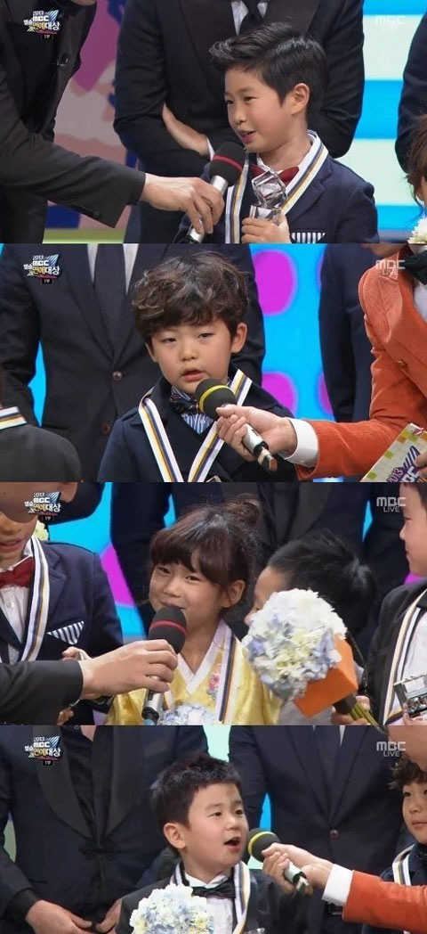 지난 29일 서울 여의도 MBC에서 생방송으로 진행된 MBC '2013 연예대상'에서 '아빠 어디가'의 다섯아이 김민국, 성준, 윤후, 송지아, 이준수가 특별상을 수상했다.
