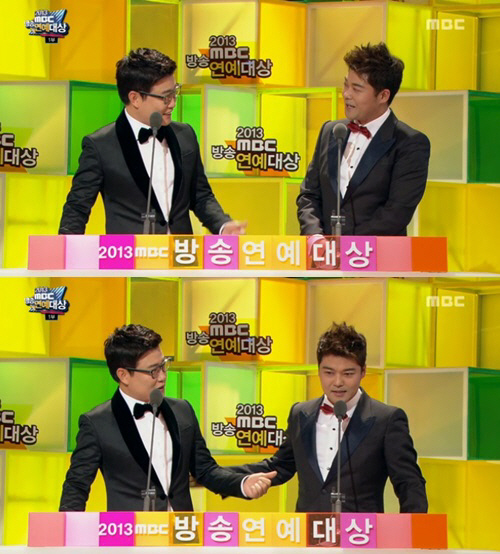 전현무는 지난 29일 서울 영등포구 여의도 MBC 사옥에서 진행된 2013 MBC 방송연예대상에서 인기상 시상자로 방송인 김성주와 함께 나섰다.