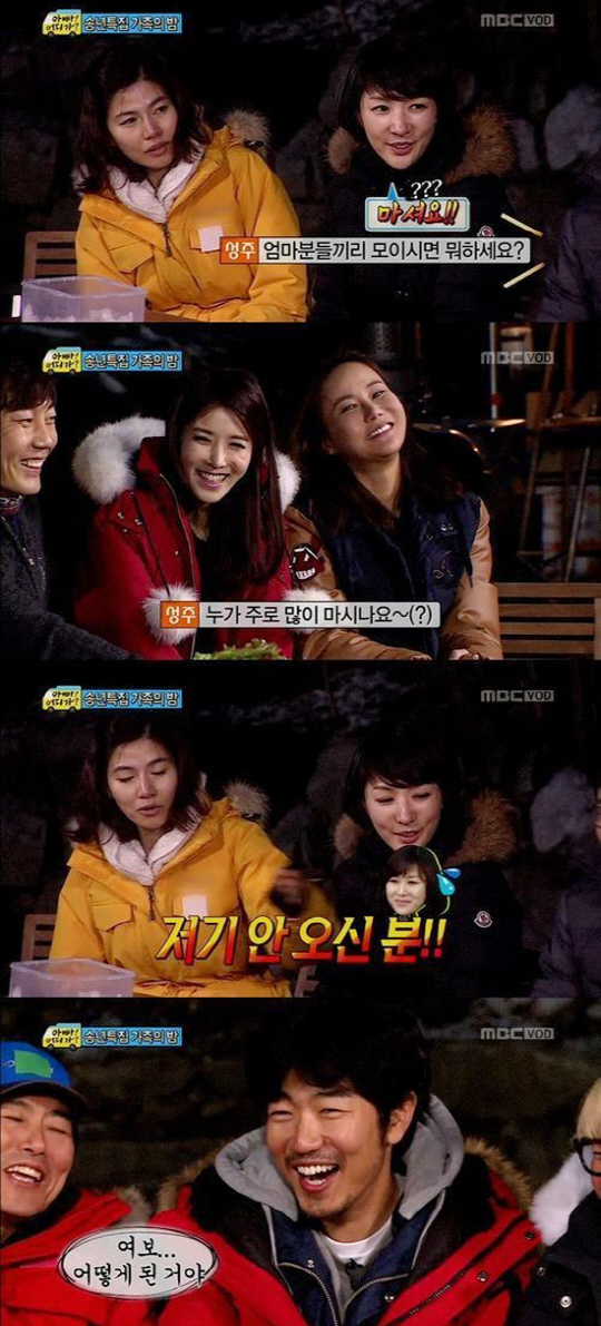 아내들 소개가 끝난 후 김성주가 "엄마들끼리 만나면 주로 뭘 하느냐"고 묻자 김성주의 아내는 "마신다"고 짧게 대답하며 웃음을 자아냈다.
