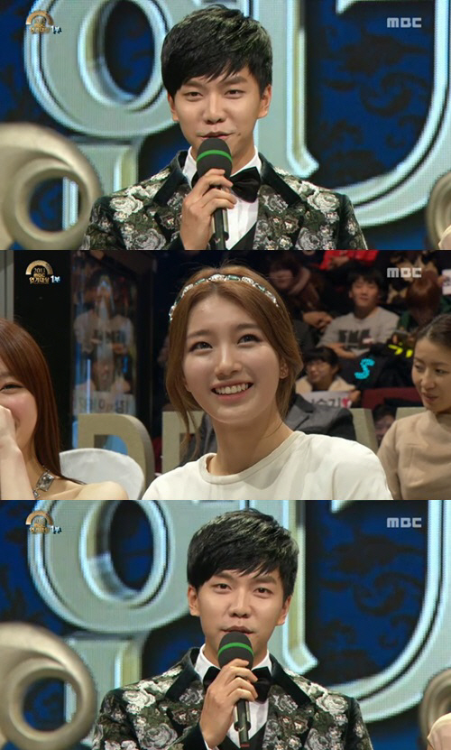 당황한 이승기는 "못 알아봤다. 오랜만인데 수지 미모가 업그레이드 된 것 같다"며 수지의 미모를 극찬했고, 이에 수줍은 듯 수지는 손으로 얼굴을 가린 채 미소를 짓는 모습이 포착돼 눈길을 끌었다.