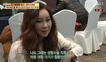 그러자 채리나는 "정신적 육체적으로 힘든 시기가 있었다"고 말했고, 김지현은 "나도 그때는 성형수술 직후라고 바로 여행가기가 힘들었다"고 너스레를 떨어 웃음을 자아냈다.