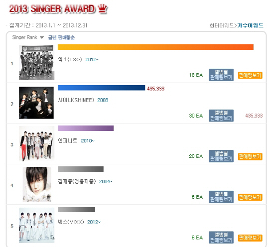 씨제스 엔터테인먼트는 "김재중이 한터차트 '2013 Singer Award'에서 4위를 차지했다. 한터차트가 2013년 한 해 음반 판매량을 집계해 발표한 이번 어워즈에서 김재중은 솔로로서는 유일하게 5위권 안에 진입하는 저력을 보였다"고 밝혔다.