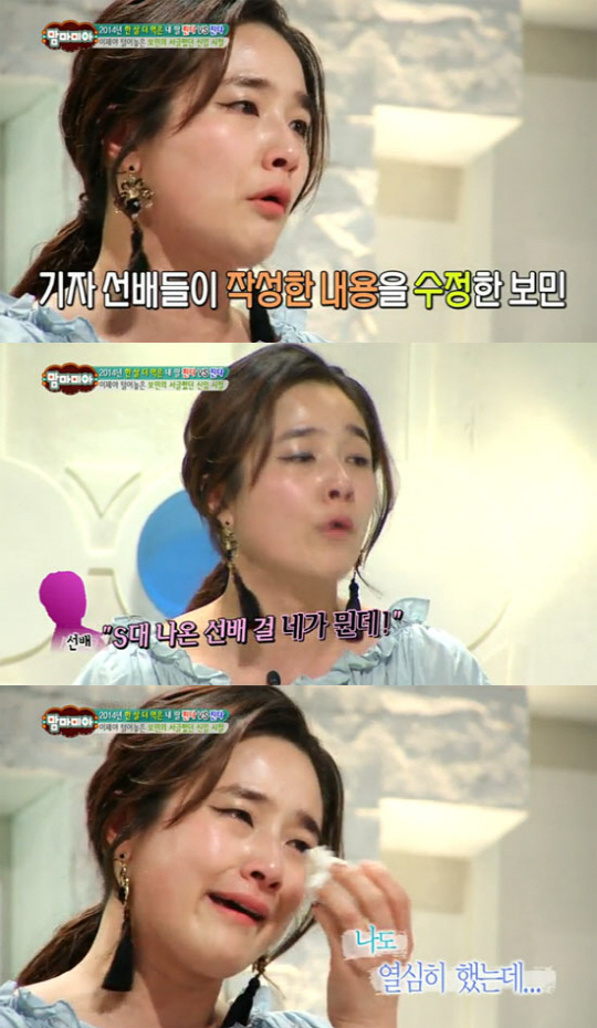김보민 KBS 아나운서가 과거 신입 시절 학벌 때문에 사과했던 일화를 밝히며 눈물을 흘렸다.