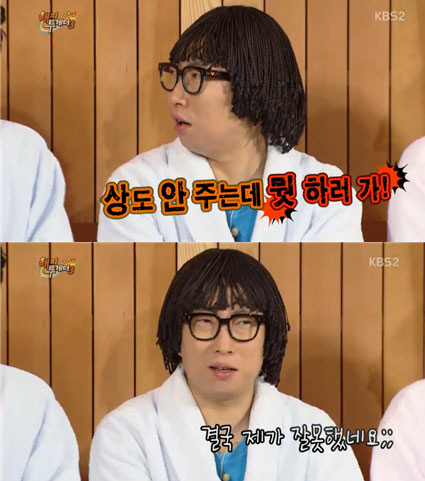 이날 MC 유재석은 박명수에게 "(2013 KBS 연예대상) 왜 안 오셨어요?"라고 물었다.