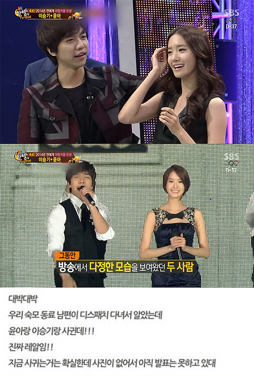 해당 사진은 한 네티즌이 SNS에 올린 글을 캡처한 것으로 '우리 숙모 동료 남편이 디스패치 다녀서 알았는데 윤아랑 이승기랑 사귄대. 지금 사귀는 거는 확실한데 사진이 없어서 아직 발표는 못 하고 있대'라는 글이 적혀 있다.