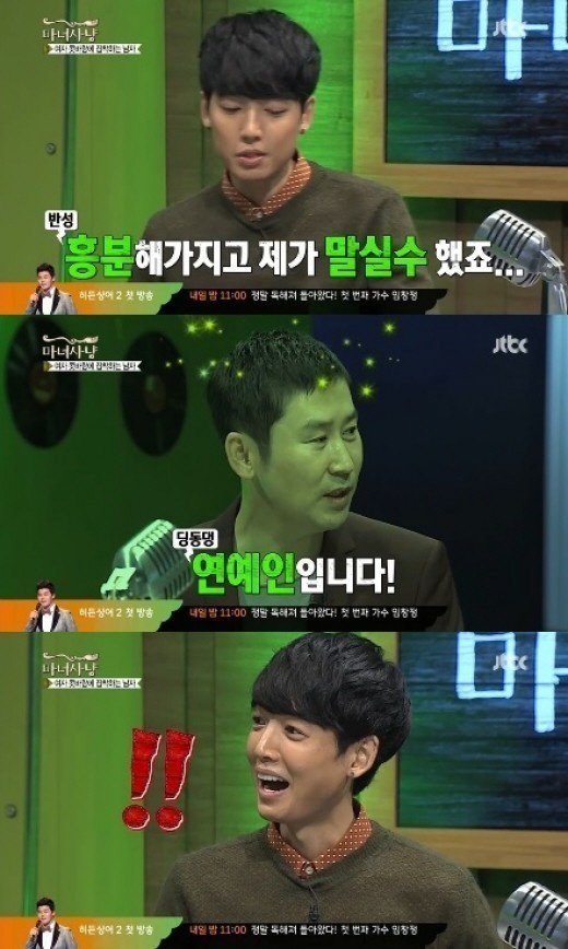 이에 MC 신동엽은 "이 정도면 알아들어야 한다. 그건 괄호 열고 '연예인입니다'라는 뜻이다"라고 콕 집어내 정경호를 당황케 했다.