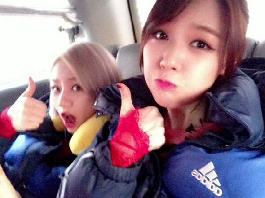 공개된 사진 속에는 이동 중인 차 안에서 민아와 혜리가 카메라를 향해 깜찍한 표정을 짓고 있는 모습이 담겨있다.