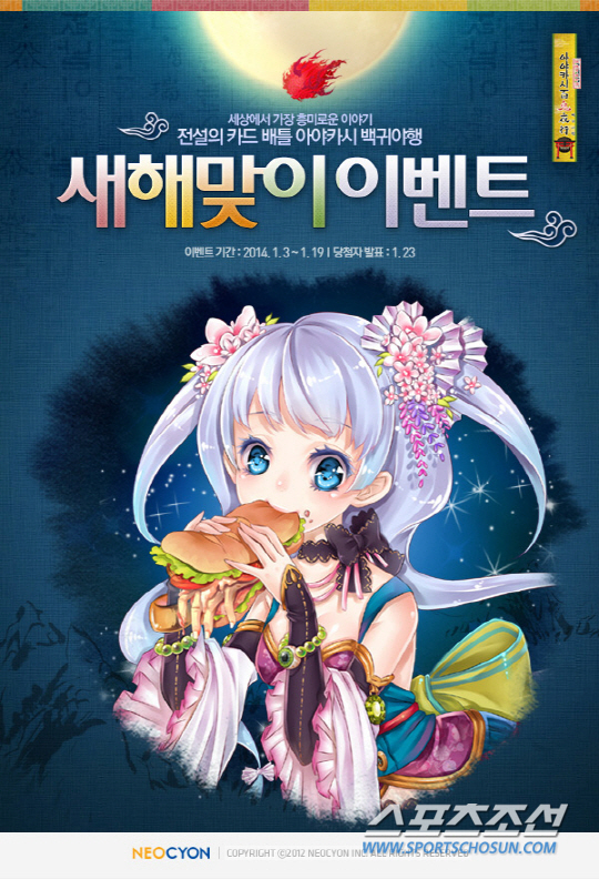 오는 19일까지 진행되는 한국 귀신 콘테스트는 '아야카시 백귀야행'에 추가됐으면 하는 한국 귀신의 특징을 설명한 뒤 해당 귀신의 이미지를 그리거나 찾아서 네오싸이언 공식 카페(cafe.naver.com/neocyon)에 올리면 유저 50명을 추첨해 '라쇼몬 가챠' 10회 티켓을 지급한다. 네오싸이언은 이번 콘테스트를 통해 선발된 한국 귀신들에 대한 심사를 통해 게임의 세계관과 적합한 귀신들의 경우 게임에 적극 삽입할 예정이다.