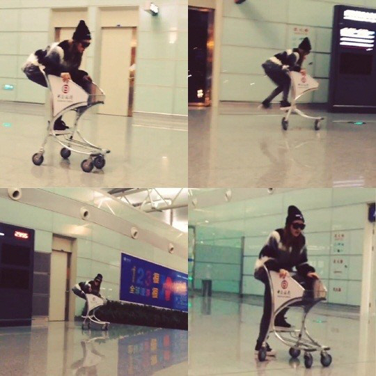 공개된 영상 속에는 공항카트의 받침대에 올라탄 채 공항 내부를 신나게 질주하는 지아의 모습이 담겨 있다.