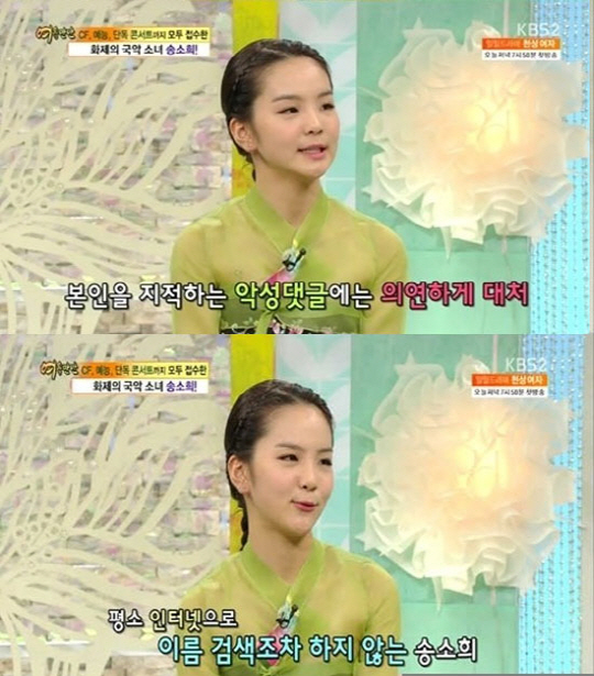 '국악소녀' 송소희가 높아진 인기에 반해 악성 댓글에 대한 생각을 전했다.