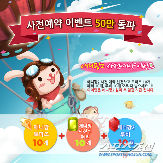 '애니팡2'의 사전예약은 이벤트 페이지(anipang2-booking.stzapp.net)와 '애니팡', '애니팡사천성' 게임 내에서 가능하며 오는 13일까지 신청할 수 있다.