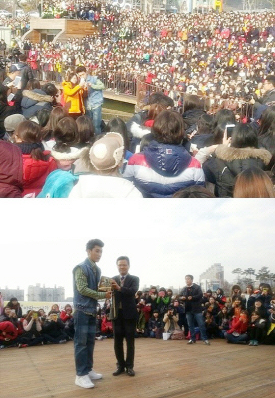 이날 행사장에는 5000명이 넘는 팬들이 운집하며 '해태' 손호준의 높은 인기를 실감케 했다. 특히 현장에는 추운 날씨에도 불구, 많은 인파가 모여 예정보다 30분 앞당겨 프리허그를 진행했다.