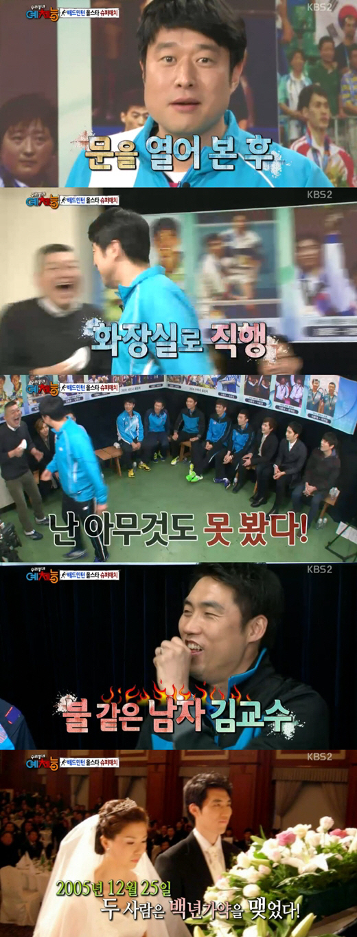 특히 하태권 코치는 "그때 옷을 좀 벗고 있었지?"라며 자신의 옷을 들어 올리는 시늉을 해 김동문을 당황하게 했다.