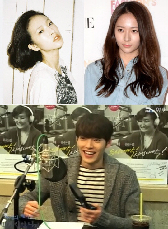이날 김우빈은 DJ 박경림에게 "드라마에 출연했던 여배우 박신혜, 크리스탈, 김지원 중 가장 동성처럼 느껴지는 배우가 누구냐"는 질문을 받았다.
