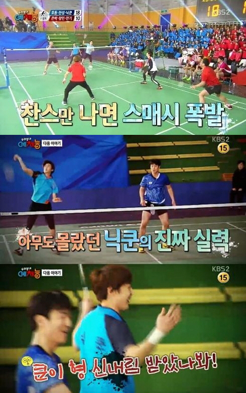 특히 닉쿤은 주어진 찬스를 놓치지 않고 강한 스매시로 상대를 공격하는 뛰어난 배드민턴 실력을 선보였다.