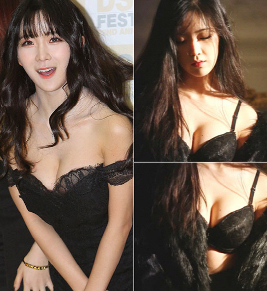 이날 조현영은 란제리를 연상케 하는 파격적인 원피스를 선택, 가슴라인과 각선미를 노출시키며 현장을 뜨겁게 달궜다.