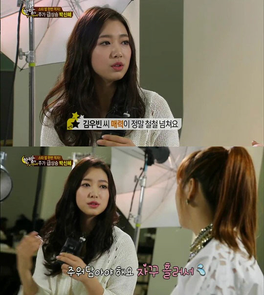 또 박신혜는 "김우빈 씨 매력이 정말 철철 넘친다. 주워 담아야 돼요. 자꾸 흘러서"라고 극찬했다.