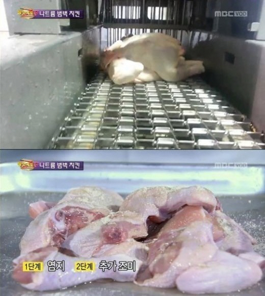 이날 제작진은 치킨 프랜차이즈에서 닭의 두꺼운 안쪽 살까지 짭짤하게 만들기 위해 수백 개의 바늘로 닭에 직접 염지제를 주입한다는 사실을 밝혀냈다.