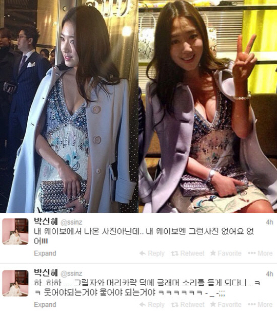9일 박신혜는 자신의 트위터에 "하하하 그림자와 머리카락 덕에 글래머 소리를 듣게 되다니 웃어야 되는 거야, 울어야 되는 거야"라며, "내 웨이보에서 나온 사진 아닌데 내 웨이보엔 그런 사진 없어요 없어!" 라는 글을 게재했다.