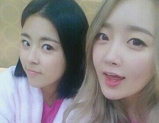 사진 속 도희와 수빈은 KBS2 '해피투게더3' 찜질방 복장에 목욕 가운을 걸치고 카메라를 향해 셀카를 찍고 있다.
