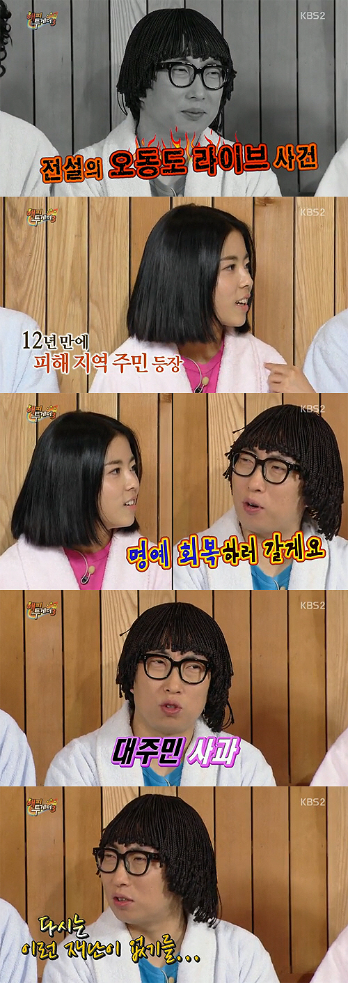 이에 유재석은 "공포에 떨게 했던 라이브 사건이다. 박명수가 한 번 인사 드리러 갈 거다"라고 말했고, 박명수도 "명예 회복하러 갈 거다. 1만5000명 오동도 주민 여러분 죄송하다. 그때 여건이 정말 안 좋아서 그랬다. 지금은 충분히 기계로 가능하다"고 너스레를 덜어 웃음을 자아냈다.